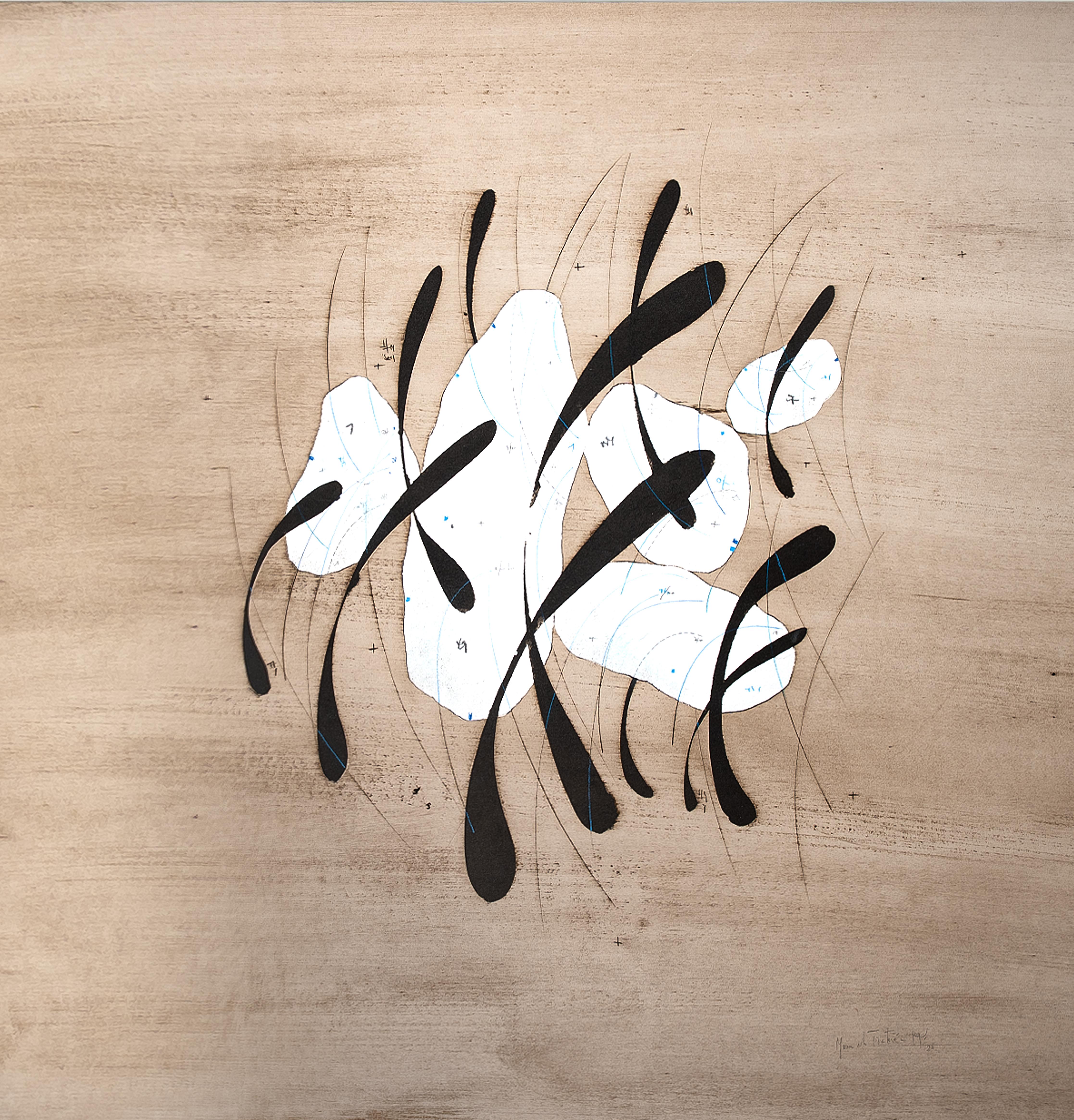 - Technique: Oil painting, scraped paper, enhanced with pastels and pencils, 75x75 cm