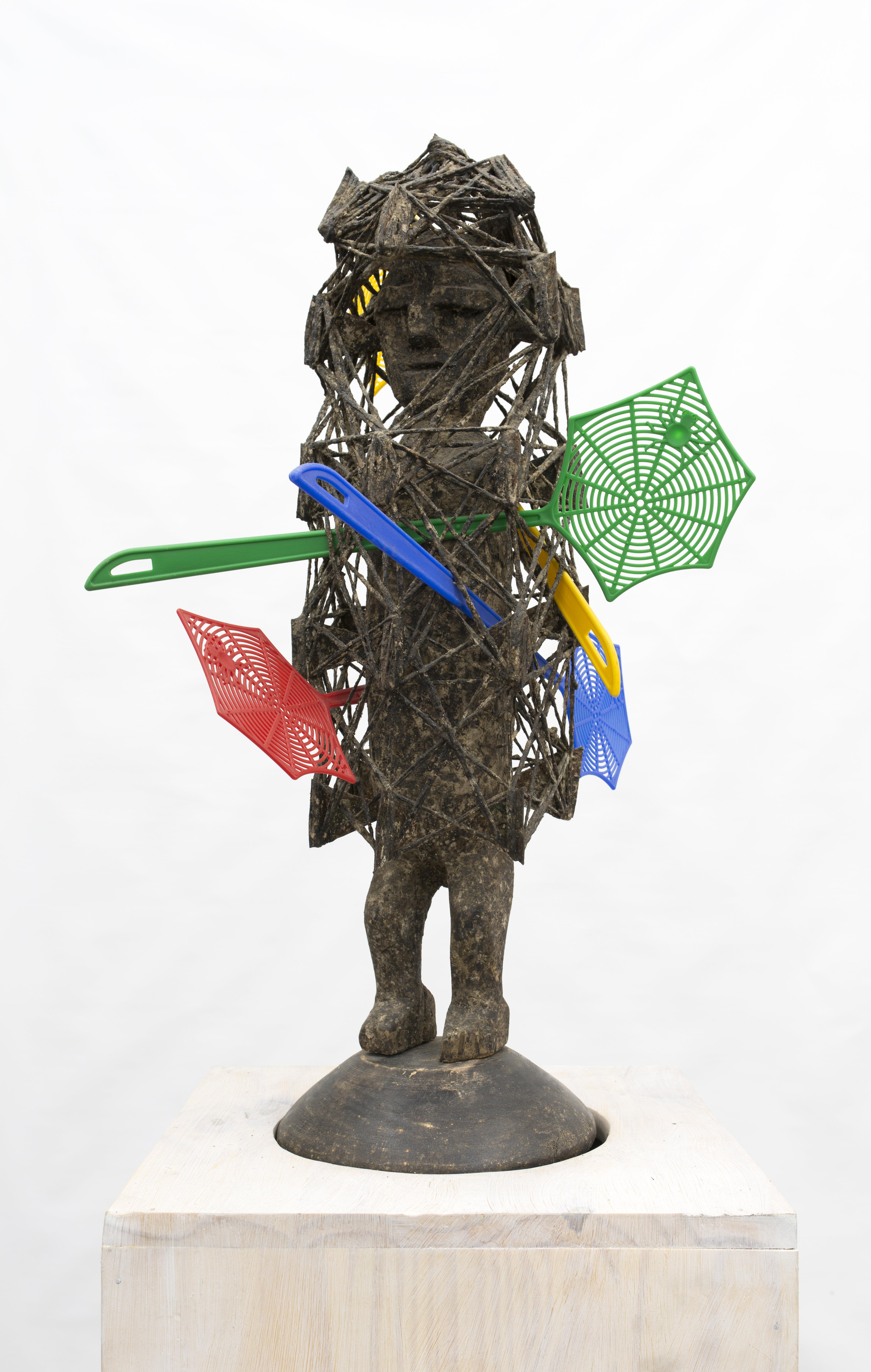 - Technique: African objet in wood, leather, metal and plastic fly swatters, 60x40x40cm