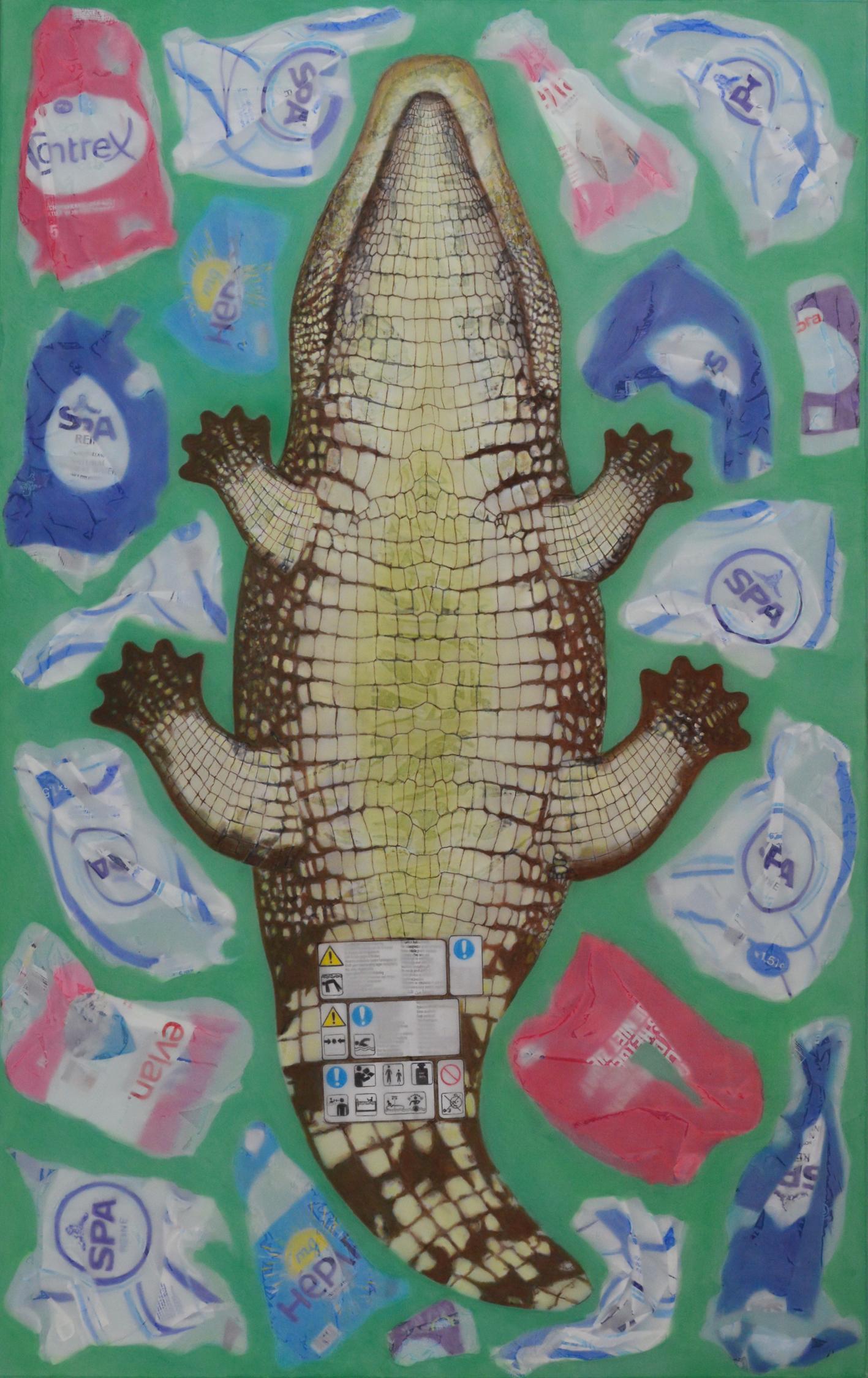 - Technique: inflatable animal, plastic waste, polyester fabric, acrylic on canvas 190x120cm
