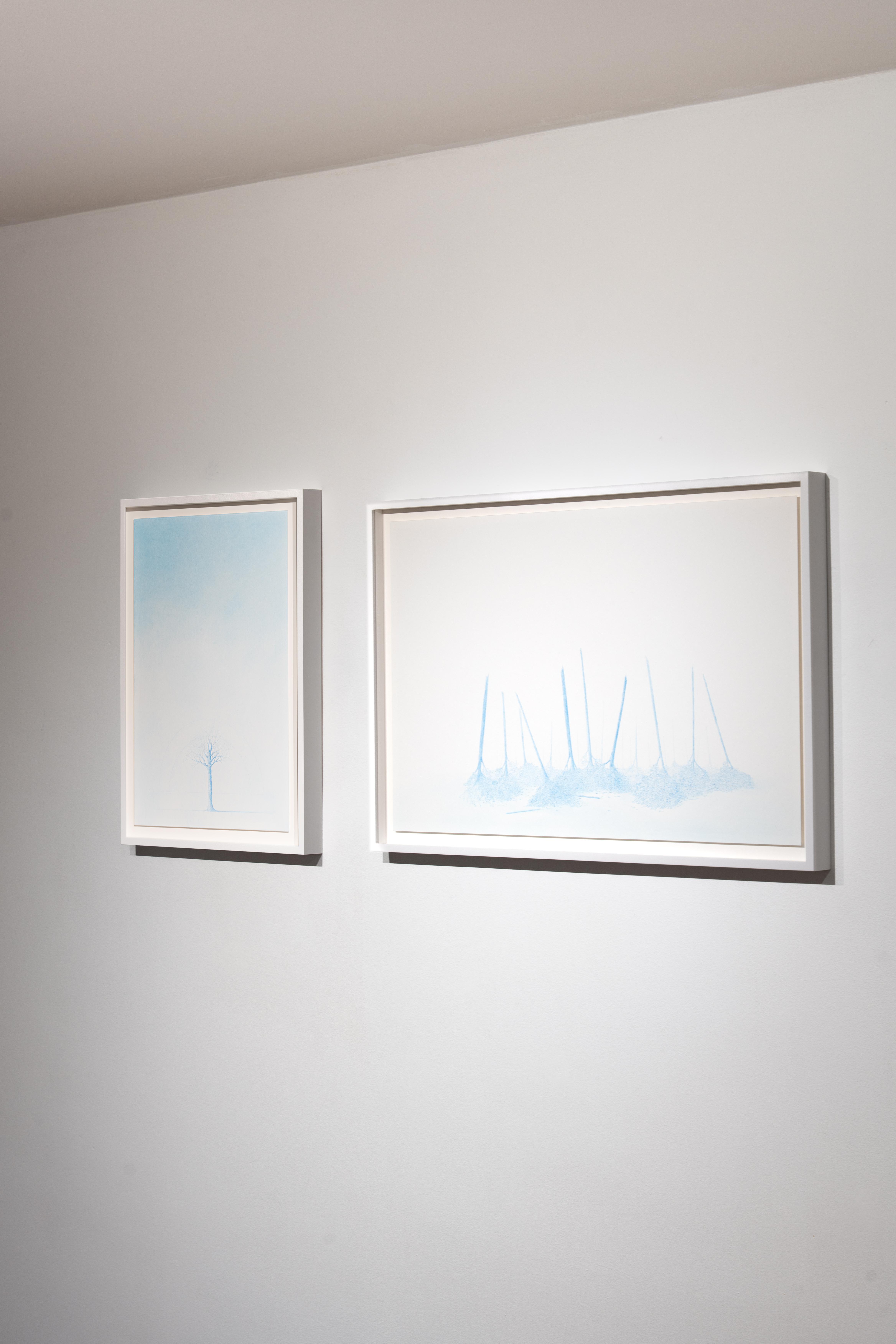 Rémy Hans, with his blue pencil, sketches silent landscapes, between deserted architectures and reemerging vegetation. His drawings recount the slow reconquest of the living over spaces marked by abandonment.