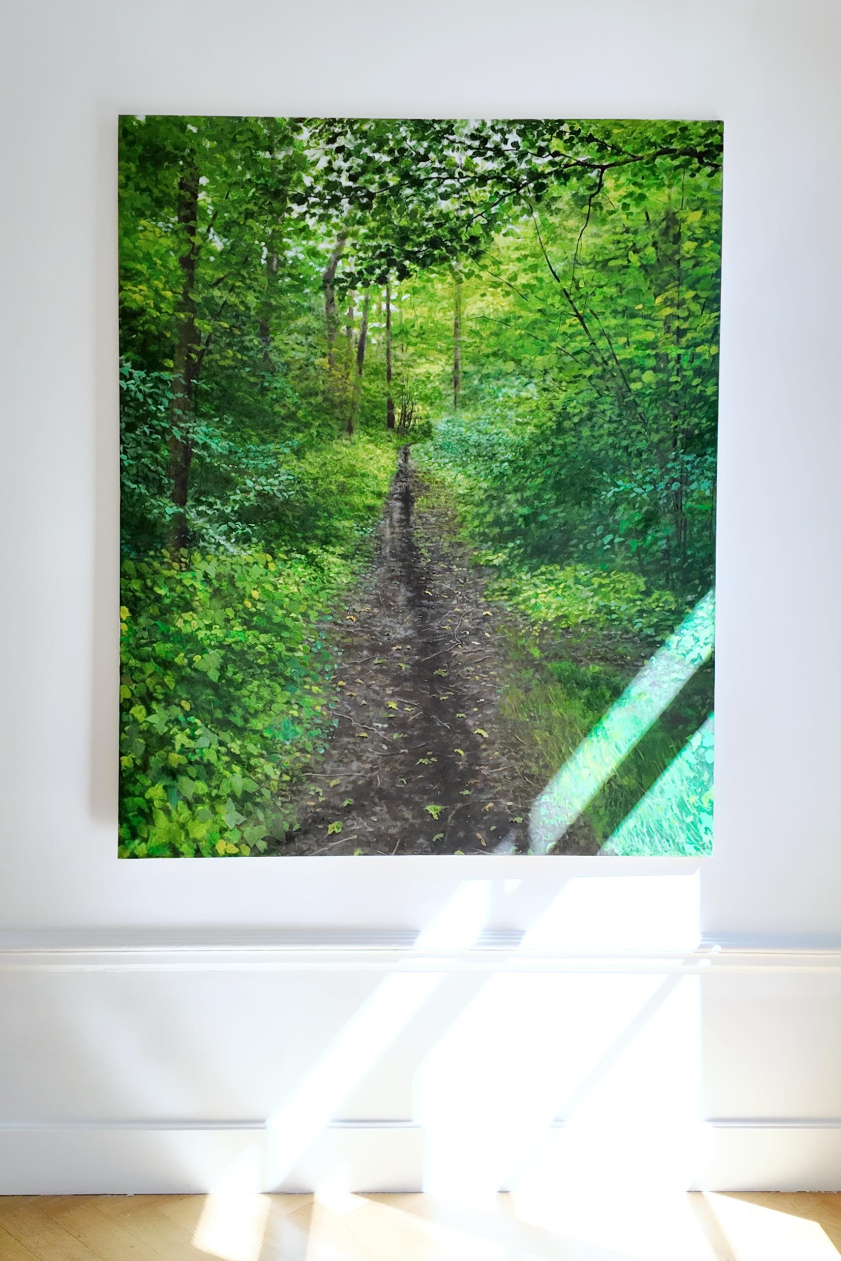 This reference points to walking, less as a metaphorical retrospective on the impact of our choices than as an attempt to recreate the experience of a solitary walker. The viewer wanders through the eyes of the artist in the surroundings that nourish his imagination.
