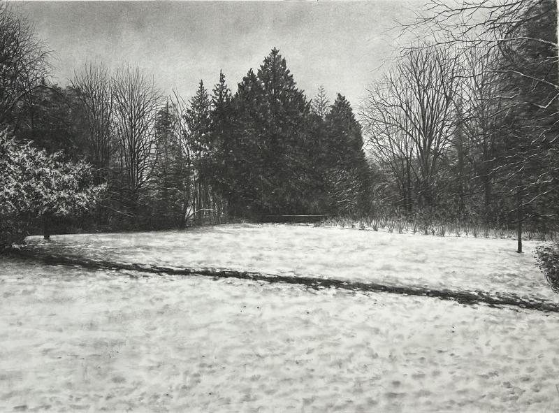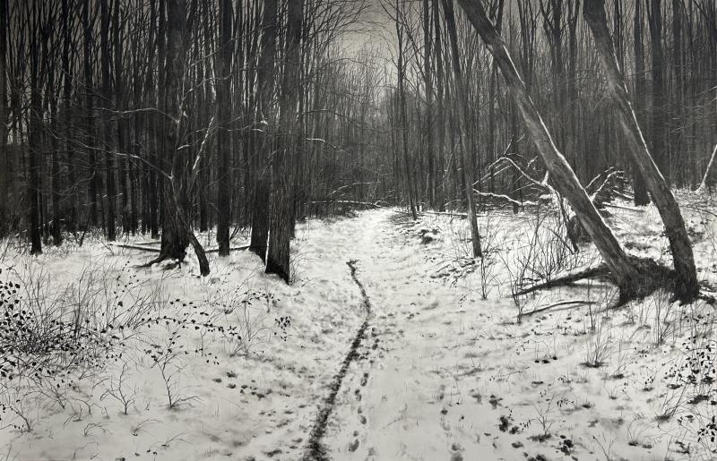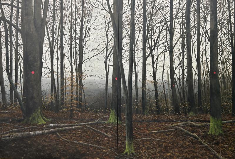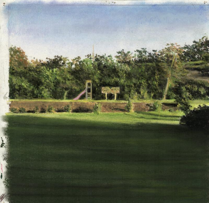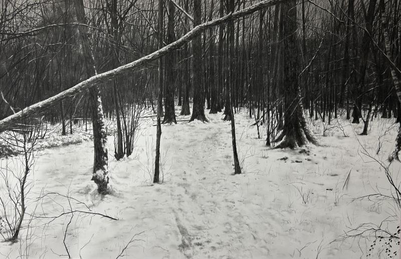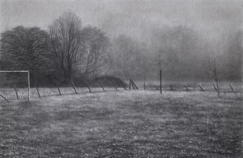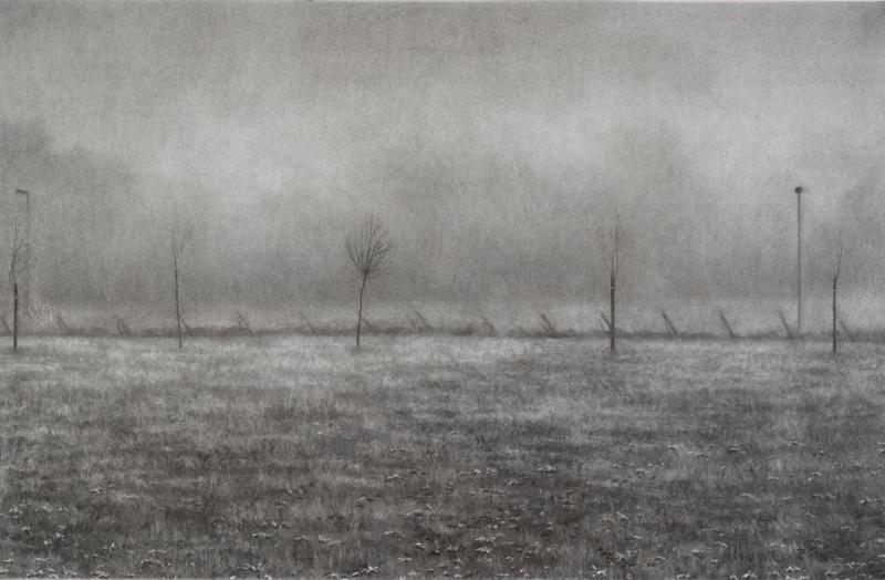 surrounding world. Little paintings (oil) on canvas or huge charcoal drawings are revealing the urban wounds of the surrounding nature. They are all occupied by a "Lynchian rumble" which makes his work flourishing a transcendence. The banality of the common world is dressed up by a holy sens which brings us back to a primitive pantheism. His charcoal work, over the evolution of his skills, proves that this is more "painting" than "drawing" and , in this way, completes his oil work .